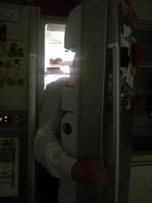 회식하고 집에와서 출근하겠다며 냉장고에 들어가는 남편. 여보 빨랑 나와.