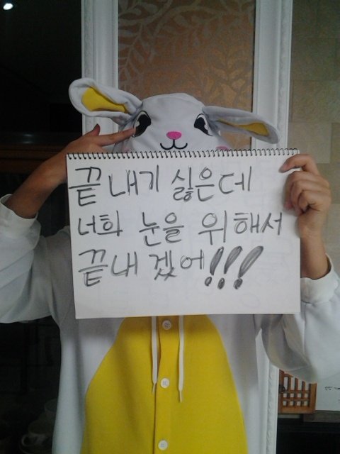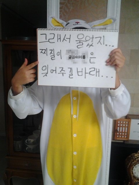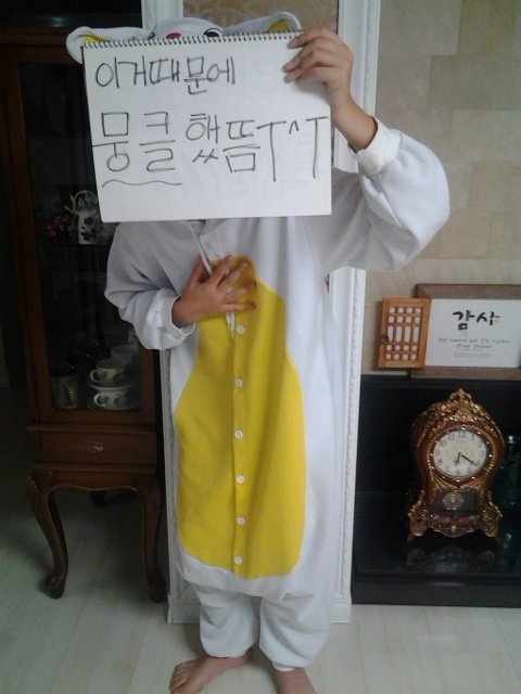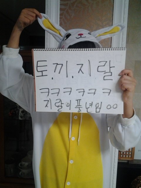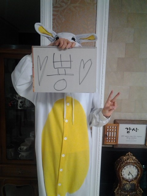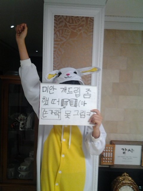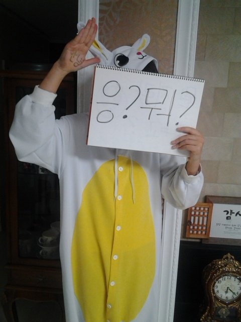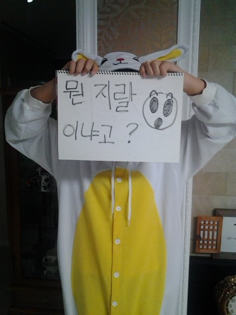 토끼잠옷을 입고 스케치북 편지를 써봄ㅋㅋ