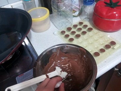 그다음 인터넷에서 산 천오백원짜리 초코송이틀에 투척!