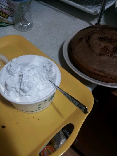 2천원에 사온 냉동실에 잠깐 넣어둔 생크림을 꺼냈음