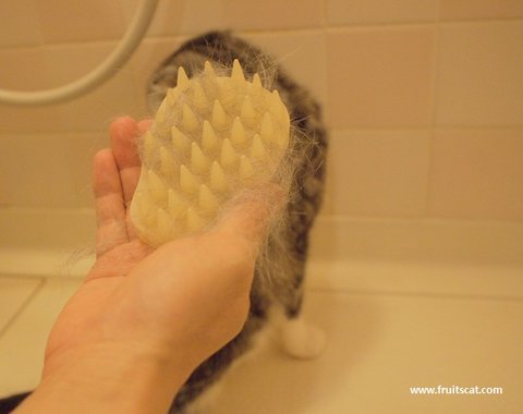실리콘 빗은 단모종에게 매우 효과적이기도 하지요~ 몇번 쓰윽해도 저만큼~