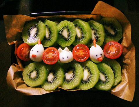 키위로 덮혀있는 도시락통 맨 아래에는