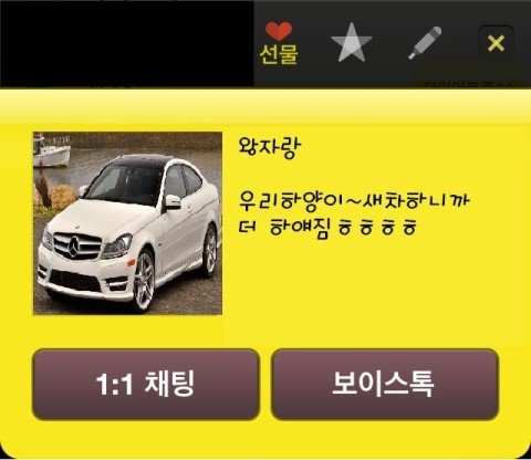 이것도 자랑형임. 카톡프로필을 본인의 자동차사진으로 해둠.