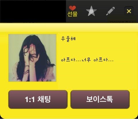 그리고 슬프거나 헤어져서 마음이 아플때나, 애인과 싸웠을때 이런식으로 바뀌어있음.