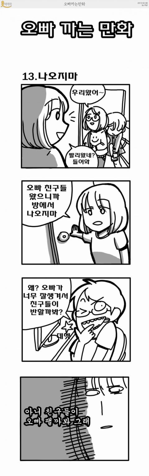 출처는 좀 말해주셔야죠;; 저도이거조아하는데 ㅎ 네이버 베도에 '오빠까는만화'입니다.