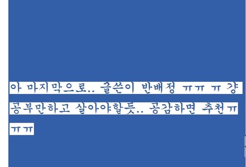 아 마지막으로.. 글쓴이 반배정 ㅠㅠ ㅠ 걍 공부만하고 살아야할듯.. 공감하면 추천ㅠㅠㅠ