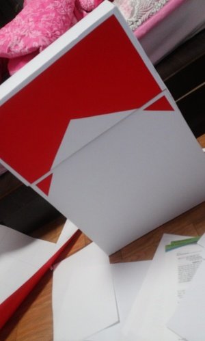 흰색시트지를 전체적으로 붙이고 두껑부분에 빨간색 시트지를 붙임!