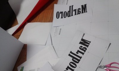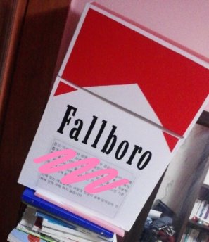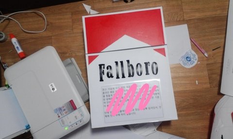 그담에 말보루 글씨체를 다운받아서 글씨반대모양으로 시트지에 뽑음! 그래야 글씨가 꺼꾸로 안보임ㅋㅋ히히 여기까지 하니깐 나름 진짜 담배느낌이남!!