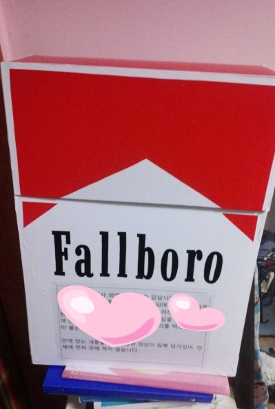 말보x 아닌 폴보루ㅋㅋ 내이름과 관련있는 걸로 해주고 싶어서 고심끝에 폴보루 로 하게 되엇음 완전 완성본은 술먹고 포장하느랴고 사진찍는걸 깜빡햇음ㅠㅠ 저 상자안에 과자와 초콜렛들을 잔뜩집어넣고 투명포장지 같은걸로 감싸 나름 담배 뜯는 느낌이 나게햇음.. 집에 담배 피는사람이 아빠뿐이여서 담배곽을 달라했지만 엄마 눈치보느랴 내주지않앗음ㅜㅜ 도안따위 없이 만든거라 진짜 담배를 자주 보는사람한테는 허접 그 자체일 수도있음ㅠㅠ 힝 안나면 어쩌지☞☜ 넓은 마음으로 봐주세요~^^