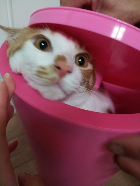 쓰레기통에 들어가서 장난치고 못나오는 달이~ ㅋㅋㅋ