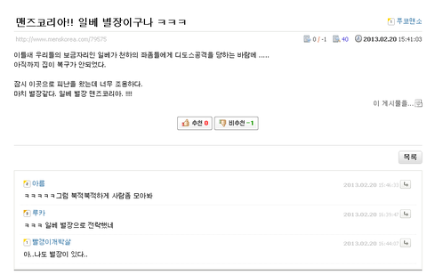 일베 별장? 이라고도 불리는 이곳은 지금 동접수도 얼마없는 쓰레기 같은 곳인데
