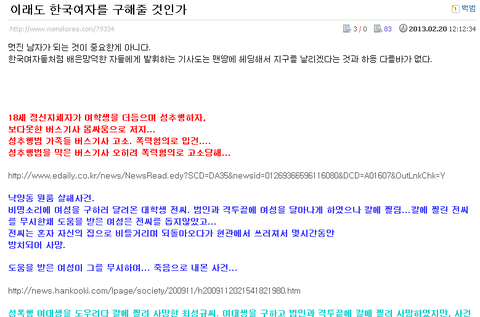 문제는 우리 나라여자들을 김치녀라고 막 비하하면서 공격하네요