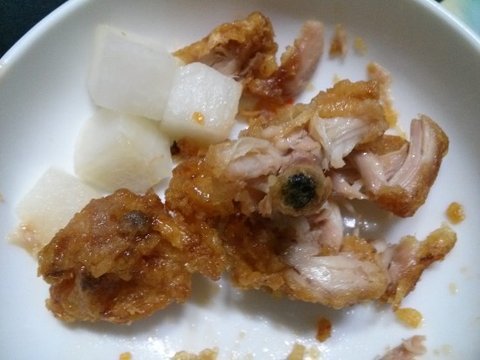 날개 두쪽 다 먹고 목부분도 먹었는데..