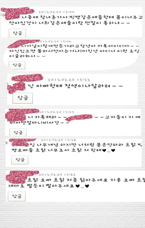 그래.. 차라리 빂한테 욕하세요. 안 그래도 지금까지 많이 상처받아서 힘들었을텐데 권지용한테 직접 멘션같은거 하지말고 차라리 빂한테 욕하세요. 그런 무개념 없었으면 좋겠지만 진짜.. 빂이나 븉이나 양쪽 다 가수한테 직멘으로 욕하진 마세요 정말. 가수들도 사람이고 상처받을 거 아녜요..