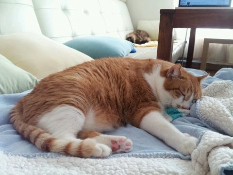 집에 있는 집사는 "지금은 계속 자니까 있다가 자세 바꾸면 새로찍어 보내줄께~~" 라고 문자를 보내더군요.