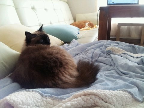 집에 있는 집사가 잠시 뒤돌아본 사이에 보니 저렇게 둘이 자리를 바꿔서 자고 있더랍니다.