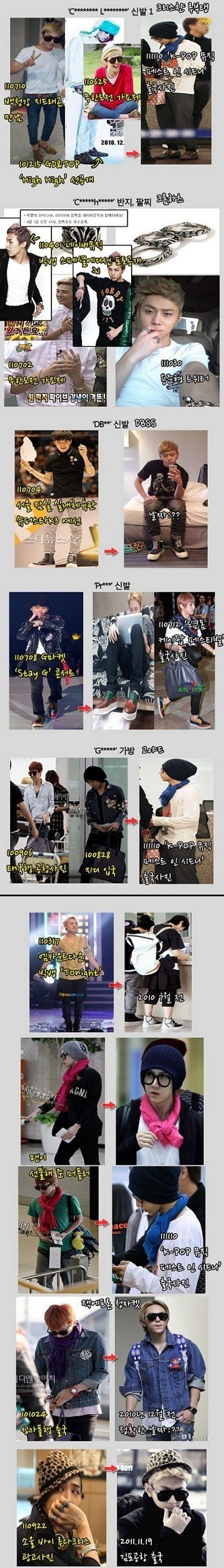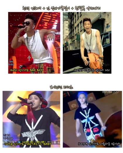 위에서 본 것과 같이 지드래곤이 먼저 한 아이템을 한두달 뒤 따라서 한다.