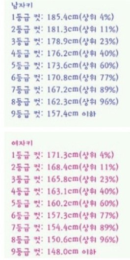 이런 등급같은거 메기는거 기분 나쁘다.. 난 솔직히 키 작은거에 대해서 별다른 위축감 같은게 없음. 유치원때부터 계속 작아서 그런가? 그냥 그러려니 함 친구들이 키가지고 장난치는 것도 별 감정 없고.. 주변에서 불쌍하게? 쳐다보는 것도 짜증남. 내가 괜찮다는데..ㅋ 뭐 옷사거나 할때는 불편한 감이 있지만 뭐 인생의 전부는 아니니까ㅋㅋ 내가 살아온 인생이 짧긴하지만 괜한 자격지심, 열등감 이런거 아니고 진심으로 키가 콤플렉스라고 여긴적 없음.
