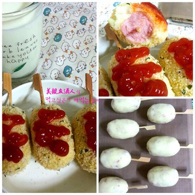 치즈감자 핫도그 (역시 튀기지 않고 오븐에 구웠습니다.)