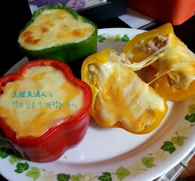 파프리카에 볶음밥을 꾹꾹~눌러담고 치즈왕창~ 오븐에 굽기 ㅋㅋㅋ