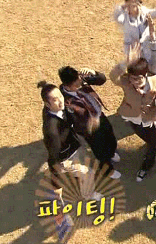 오른쪽 끝에 짤려서 제대로 안나온 하얀색티 입은 사람이 재범이입니다.