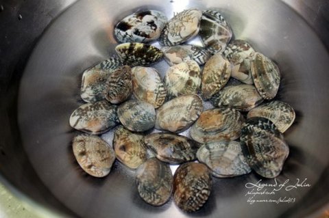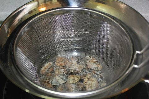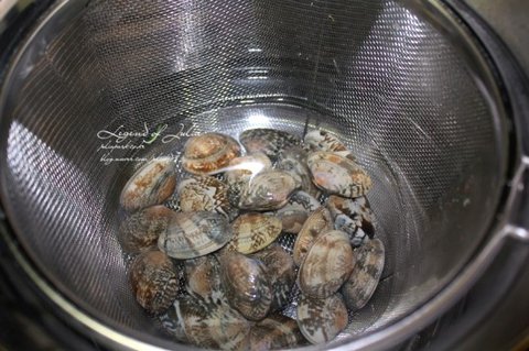 찬물에 빠득빠득 닦은 바지락은 삶아 육수를 냅니다.