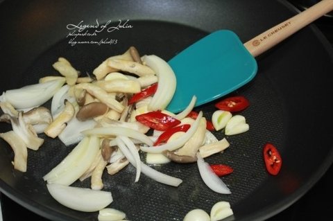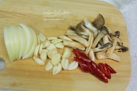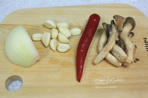 양파, 마늘, 홍고추, 버섯도 썰어 준비해 둡니다...냉장고에 있는 애들로...ㅋㅋㅋ
