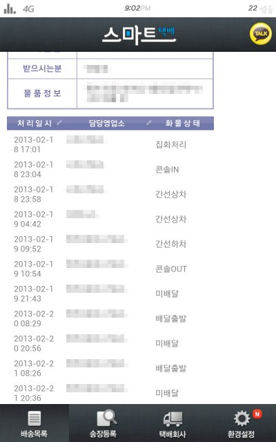 우왕ㅋ씐난닼는 마음으로 지웠던 택배추적? 조회 어플을 다운햇음