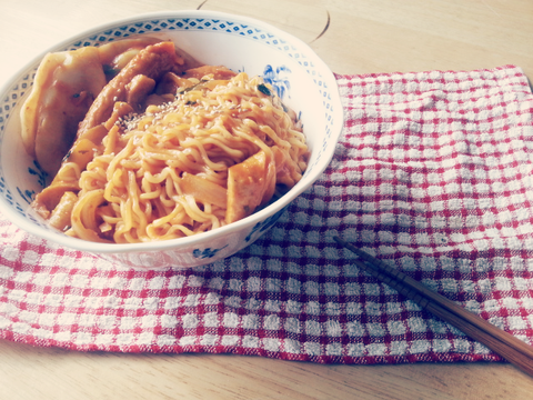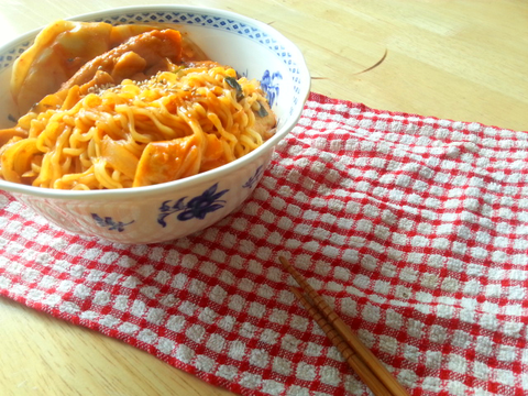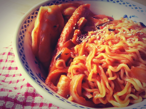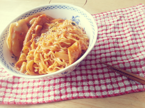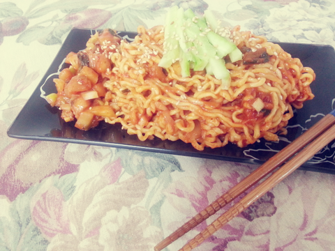만들다보니 국물이 너무 많아져서 볶음라면이라기보단.. 매콤국물라면이 되어버려 실패!