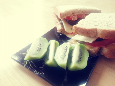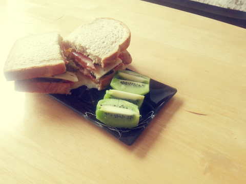 갈릭소스 만들어서 크래커도 찍어먹고 식빵에도 발라먹고 그래도 남아서 만든 샌드위치!^^