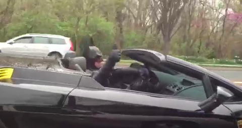 자신의 람보르기니 차량에 번호판을 가리고 배트맨 심벌을 넣은게 문제가 되어서 경찰에 잡힌거였어요.