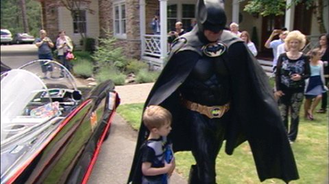 그 뒤로 아픈아이들에게 꿈과 희망을 주기 위해 배트맨 분장을 하고 봉사를 하고 다닌다네요..