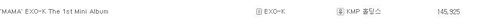 1위 EXO-K 145,925장(미니앨범 하나)