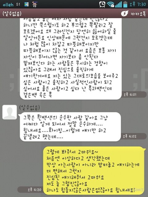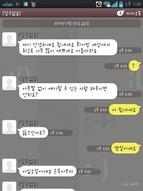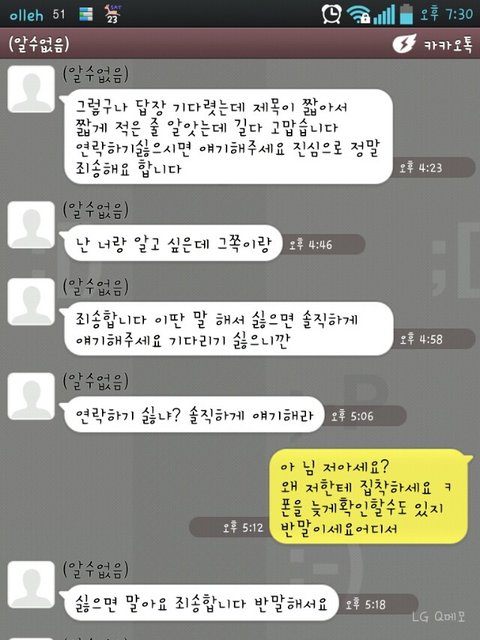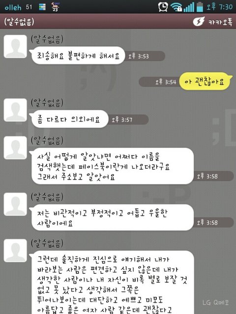 처음엔 모르는사람에게 톡왔길래 궁금하기도하고 그래서 답장했어요..