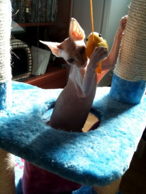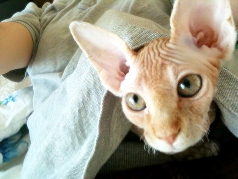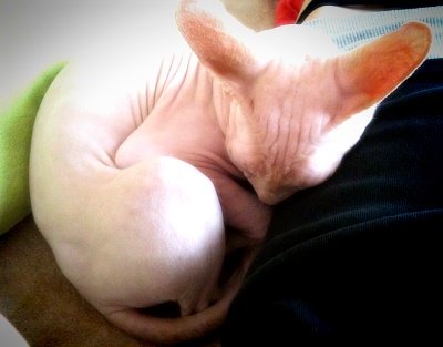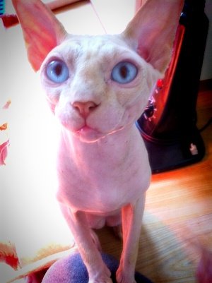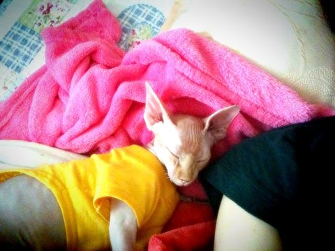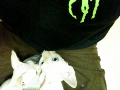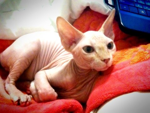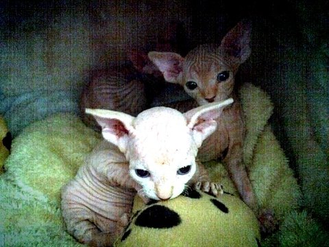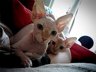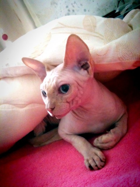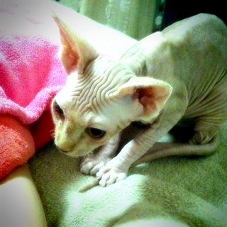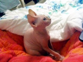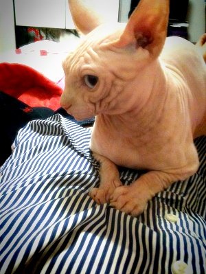 음... 스핑크스 아가들은 실제로 보면 무척 매력이 있고 이쁩니다. 스킨도 매우 부드러움, 강아지 샤페이(샤베이)(?) 종과는 다릅니다. 그리고 매우 똑똑합니다. ㅋㅁㅋ 뒤끝도 있고 복수도 합니다.