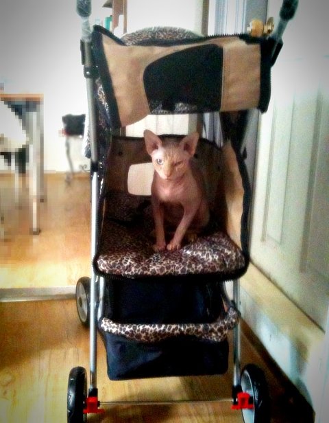 그리고 고양이 유모차를 태워주니 좋아했던 류... 당신 류는 결막염이 심해서 눈을 잘 못 뜨고 그래서 사진에 얼굴이 찡그려짐...