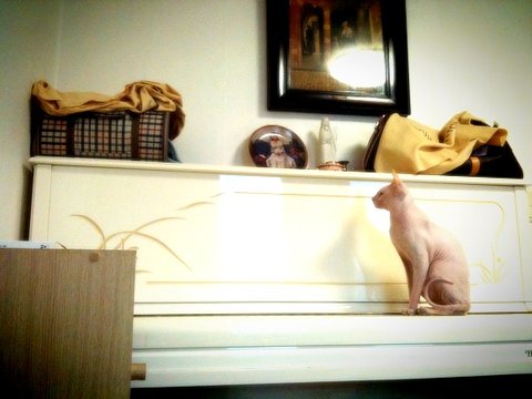 피아노 위의 류... 저 체크 무늬 안에 코코가 있었음... 아마도 류가 코코가 나오기를 기다렸던 사진...