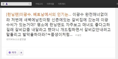 오늘 이광수 베트남가서 실시간 검색어 떴길래 눌렀더니 업데이트 되고있는 글중에 이런글이 있더군요;;;