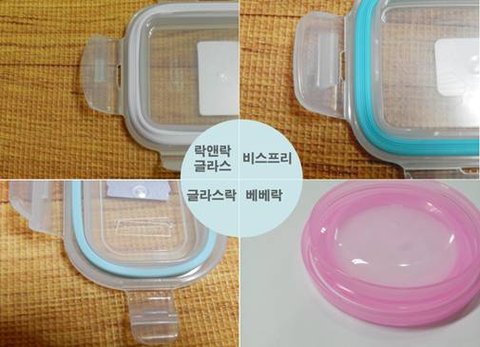 글라스락은 그에 반해 홈안에 고무패킹이 들어가 있는 형태입니다. 손으로 빼거나 넣기가 어려워 뾰족한 이쑤시개 같은 것으로 빼서 세척해야 하는 번거로움이 있습니다. 베베락은 사진의 흰 부분, 아주 가는 고무패킹이 들어가 있어 세척하기가 불편했습니다.