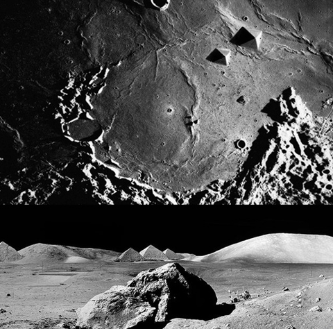 위 사진은 달의 뒷면에서 발견된 피라미드야. NASA가 은폐하려 했던 자료중에 하나인데