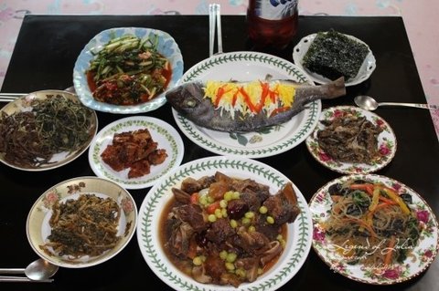 아빠 생신이 음력 보름 하루 전날이라 나물도 늘 같이 놓으세요~ㅇ