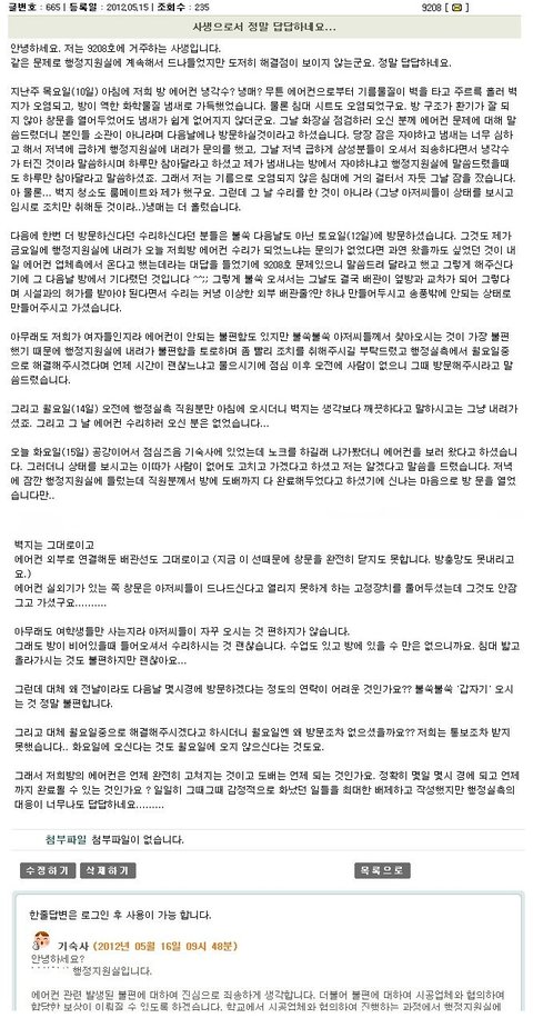 9. D대학교 기숙사 홈페이지 민원을 제기하는 Q&A란에 보면 비슷한 사례가 많음