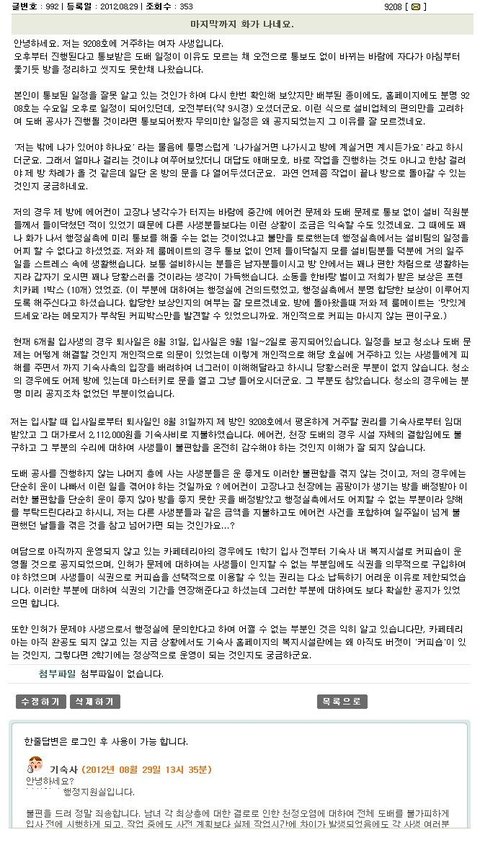 도배공사를 오후에 하기로 했는데 오전에 불쑥 찾아와 방에서 나가라고 안하무인식의 태도를 보인것 등 아래 첨부)
