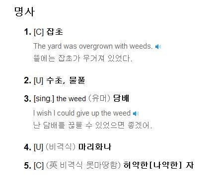 weed의 사전적 의미를 검색해 보았다