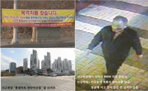 사고의 진실을 밝히기 위해서는, 당시 사고 현장을 목격하셨거나 사고 현장 혹은 이후 상황이 담긴 차량 블랙박스 영상을 소지하고 계신 분들의 도움이 절실합니다. 또한 검은색(검은색점퍼/어두운색 바지) 계통의 옷을 입고 얼굴 부위에 큰 상처를 입은 채 사고 현장을 이탈한 사라진 BMW 운전자에 대해 알고 계신 분들의 제보도 큰 도움이 될 것입니다.