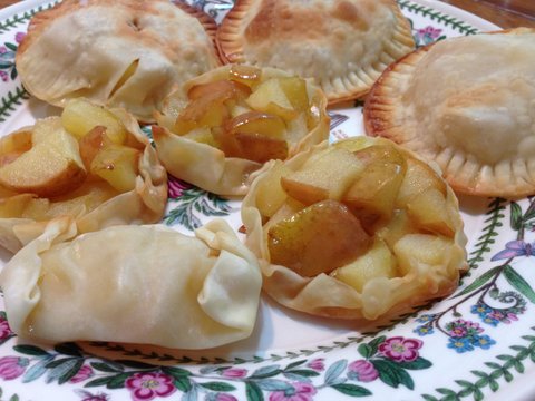 집에서 배고팠는데 만두피랑 사과가 마침 있어서