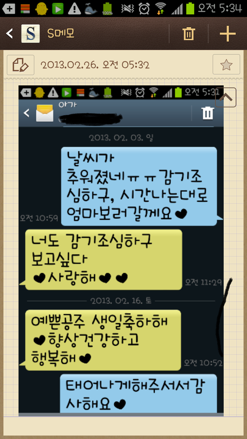 "미안하다... 내가 너를 두고 이곳에 와서 매일 너만 생각하며 밤을지새웠다... 너를 잊은적이 없어....정말 미안해 아가... " 미안하단 말만 되풀이하던 엄마.....