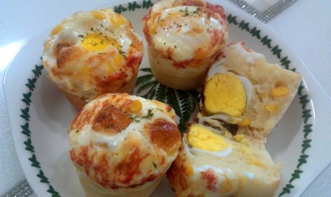 2. 머핀틀이나 종이컵에 1/3 높이만큼 담아준뒤 계란 1개씩 올려주고