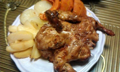 (배쪽을 갈라서 닭을 안 펴주면 굽는데 시간이 더 많이 걸리구요~ 포크나 이쑤시개로 구멍을 내주는 이유는 기름이 잘 빠져나오도록 하는거에요^^)