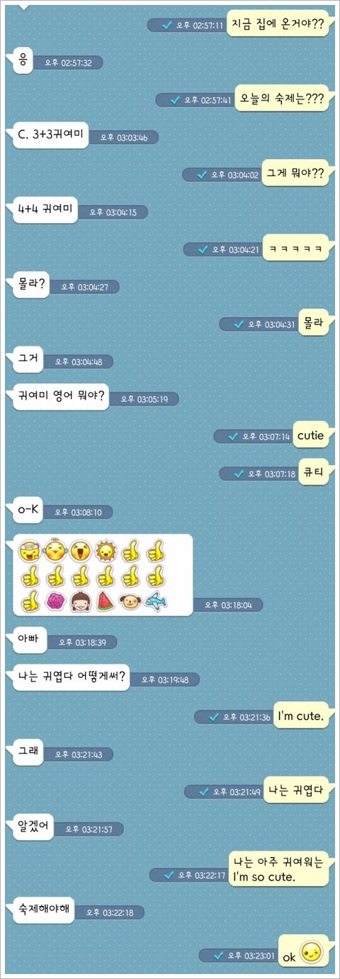 귀여워가 주제랍니다. 결국은 I'm so cute. 이라고 했더군요 ㅋㅋ